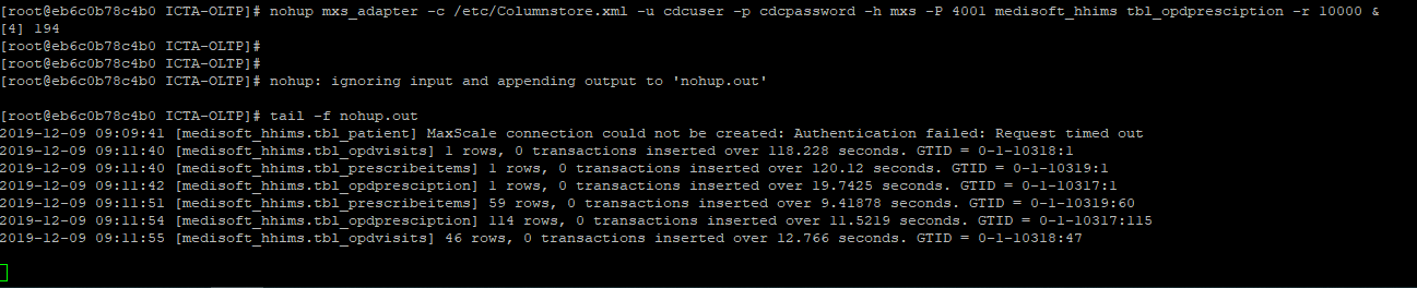 max_adapter output hags out/ stuck before completing the jobs, and not resuming. Returns below errors some times