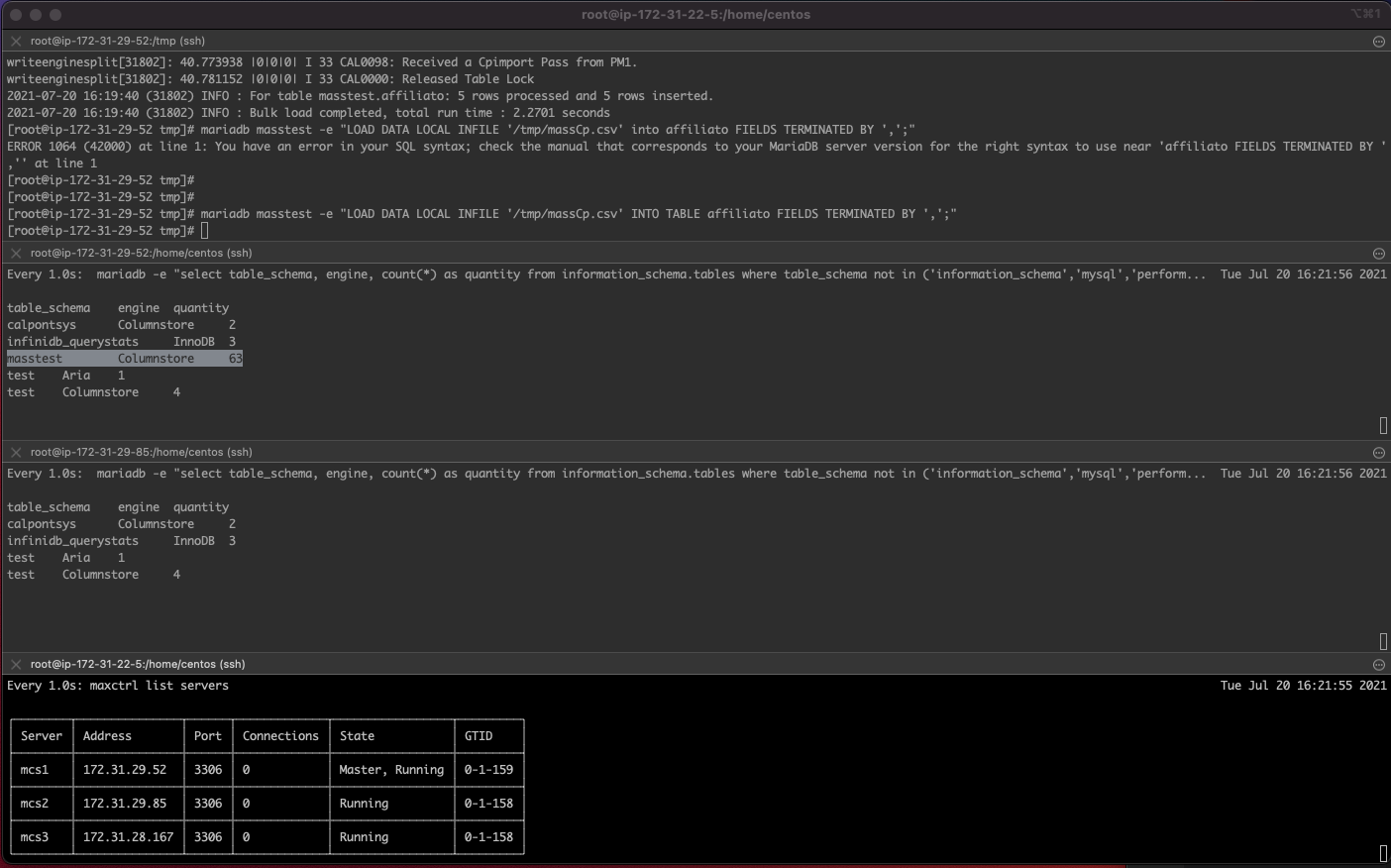 210622 5:05:12 Columnstore: Started; Version: 5.6.1-1 |