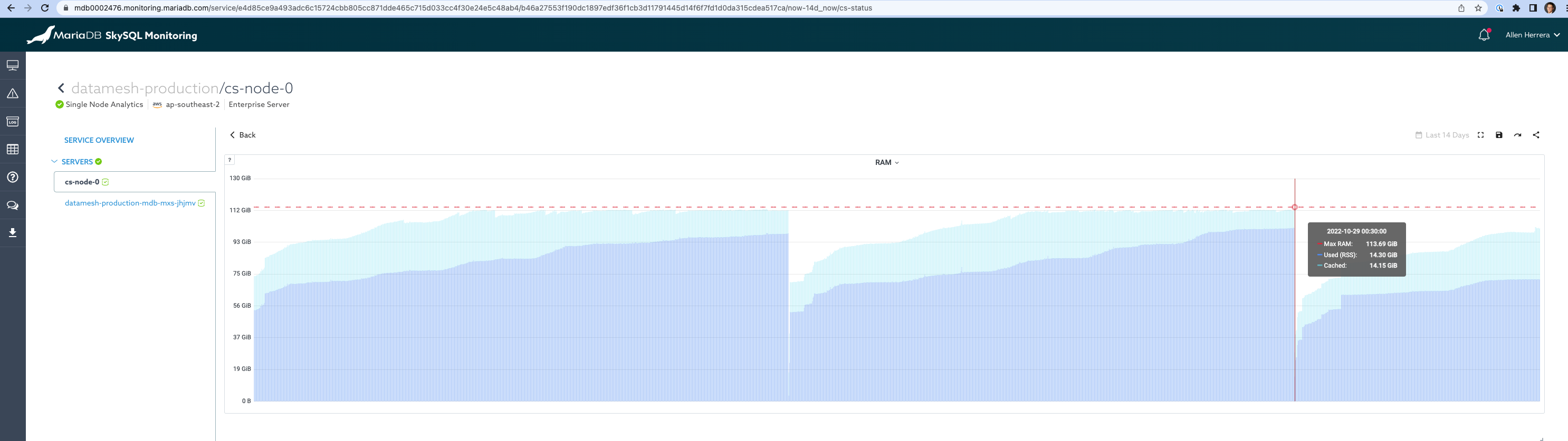 The current work around is that RDBA/ SRE has to manually mcsShutdown and mcsStart every couple days. However the customer often has to file a ticket saying its crashed and to restart before the scheduled stop/start to clear memory.