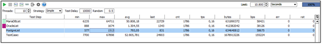 This test has been done in 10 parallel threads with 10 second delay before next 10 threads are started with 3 hour duration.