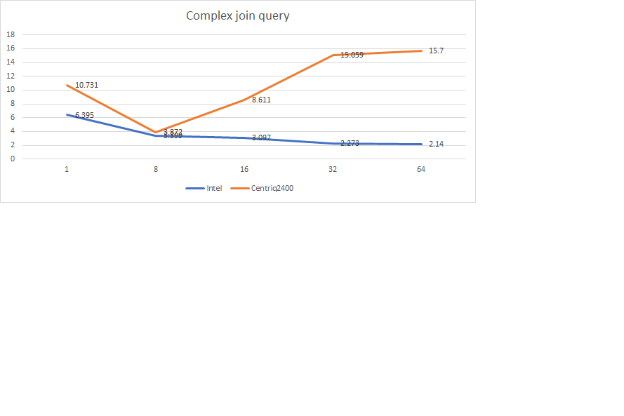 While testing the performance of complex queries I see huge degradation in performance as we increase the number of client threads. I used the benchamark mysqlslap to evalaute the complex queries.