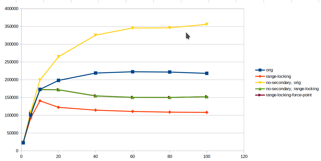 Benchmarking script: https://github.com/spetrunia/range-locking-benchmark
