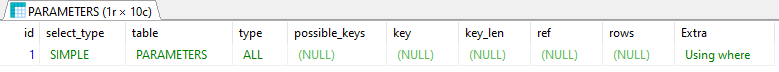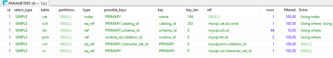 It seems to execute a full table scan in INFORMATION_SCHEMA.PARAMETERS