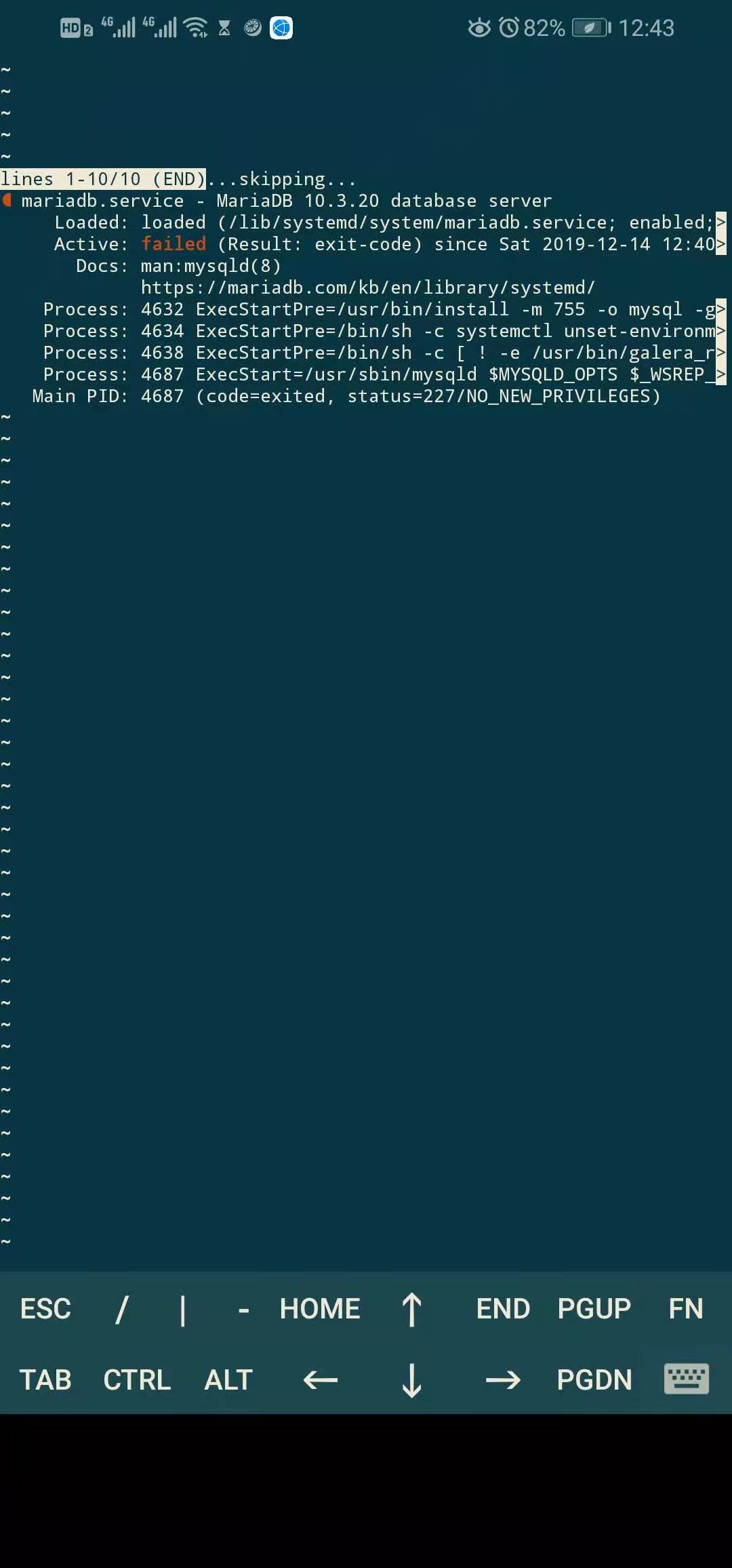 Active: failed (Result: exit-code) since Tue 2019-12-10 19:08:14 CST; 27s ago