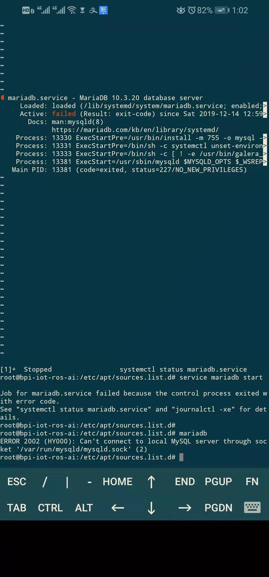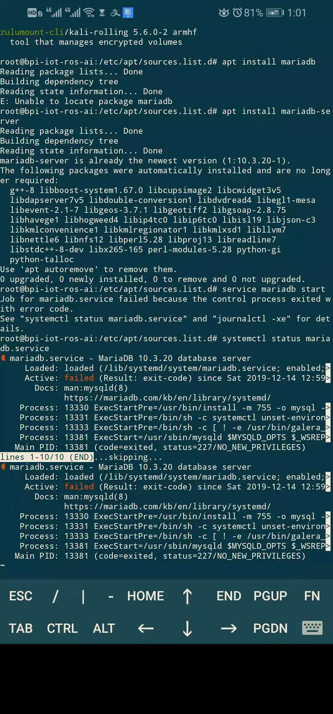 Process: 19440 ExecStartPre=/usr/bin/install -m 755 -o mysql -g root -d /var/run/mysqld (code=exited, stat>