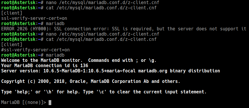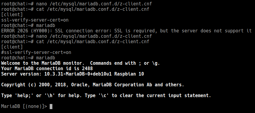 Also in 10.4.12 - even if the auth type is unix_socket for root@localhost, it still fails with the SSL error (cannot verify cert) when you try to connect as root@locahost (e.g. sudo mysql)