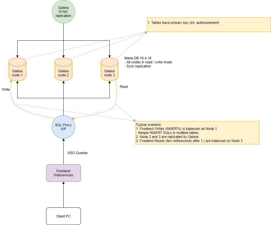 2. We have a webservice that connects to Galera start a tool that sends queries continuously to the database