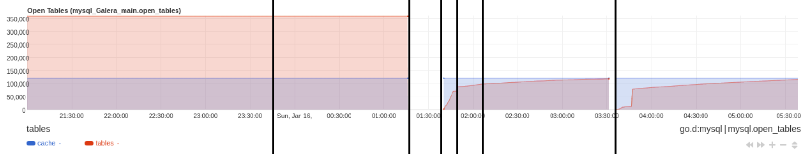 - Normally, mariadb has more than one table cache instance of 120K tables open. But after upgrade even one table cache instance was not utilized completely (reached 110K open tables only).