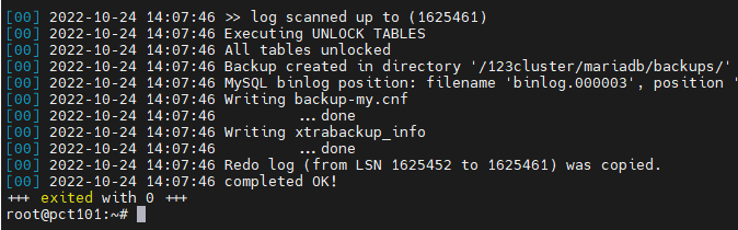command is sudo mariabackup --backup --target-dir = /123cluster/mariadb/backups/ --user = root --password = password