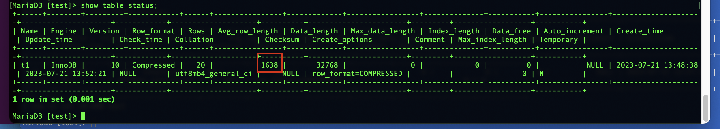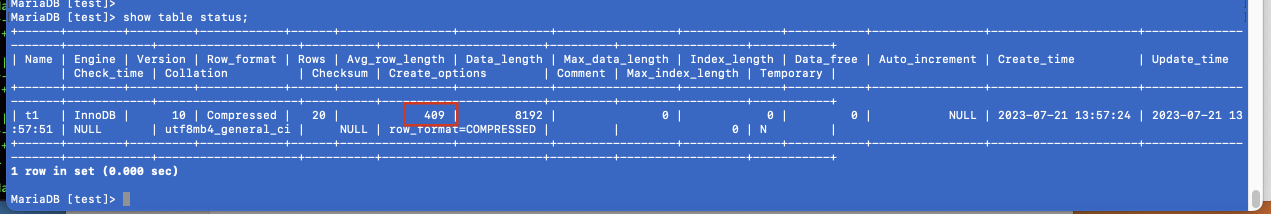 ) ROW_FORMAT=COMPRESSED, ENGINE=InnoDB;