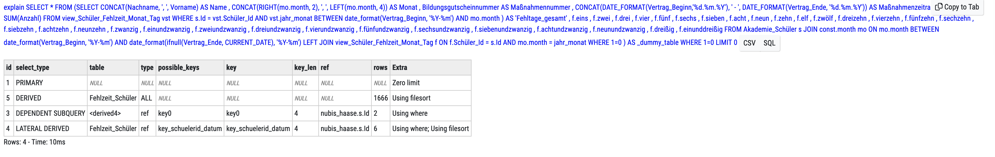 date_format(ifnull(Vertrag_Ende, CURRENT_DATE), '%Y-%m') LEFT JOIN view_Schüler_Fehlzeit_Monat_Tag f ON f.Schüler_Id = s.Id AND mo.month = jahr_monat WHERE 1=0 ) AS _dummy_table WHERE 1=0 LIMIT 0