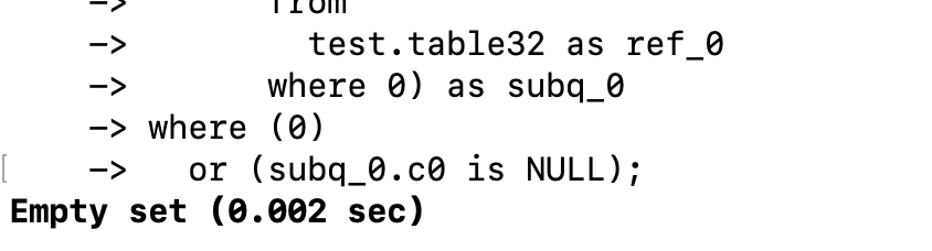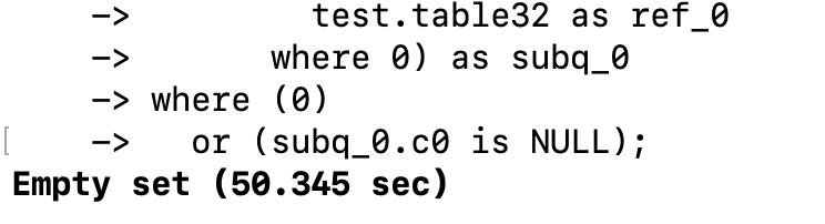 When executing source select.sql normally, you will get that the empty set takes about 0.002s.