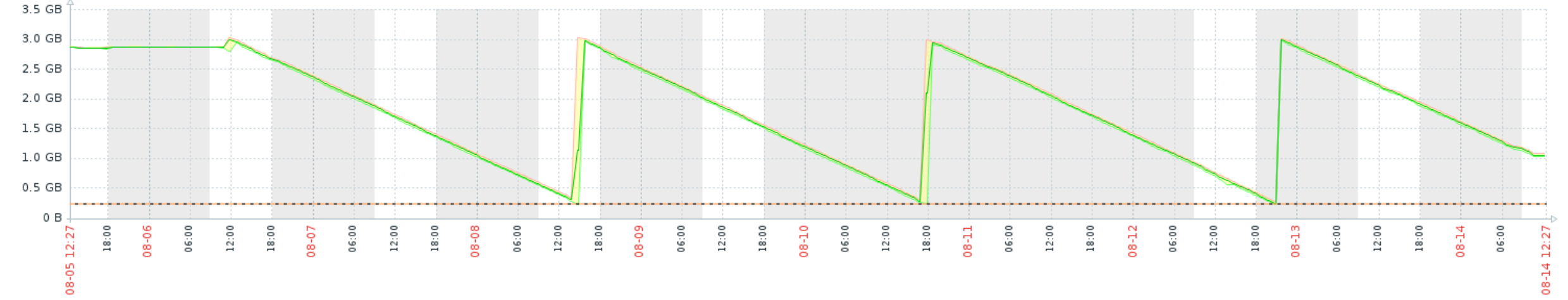UPD: My configuration use keepalived(active - passive), I see memory leak on passive node too.