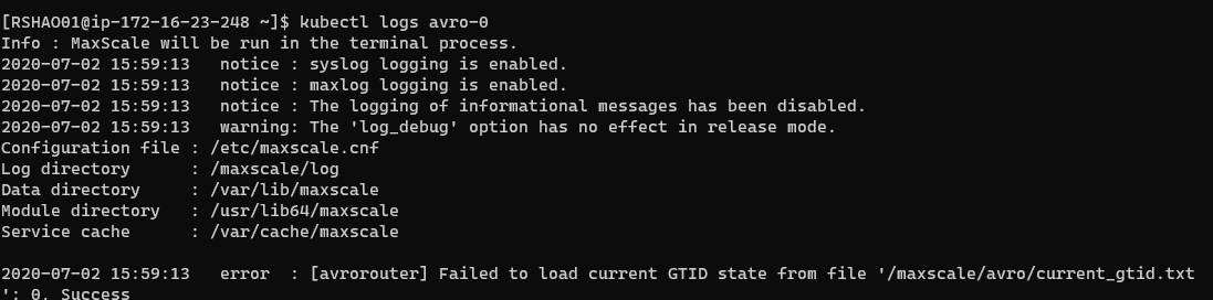 [avrorouter] Failed to load current GTID state from file '/maxscale/avro/current_gtid.txt': 0, Success