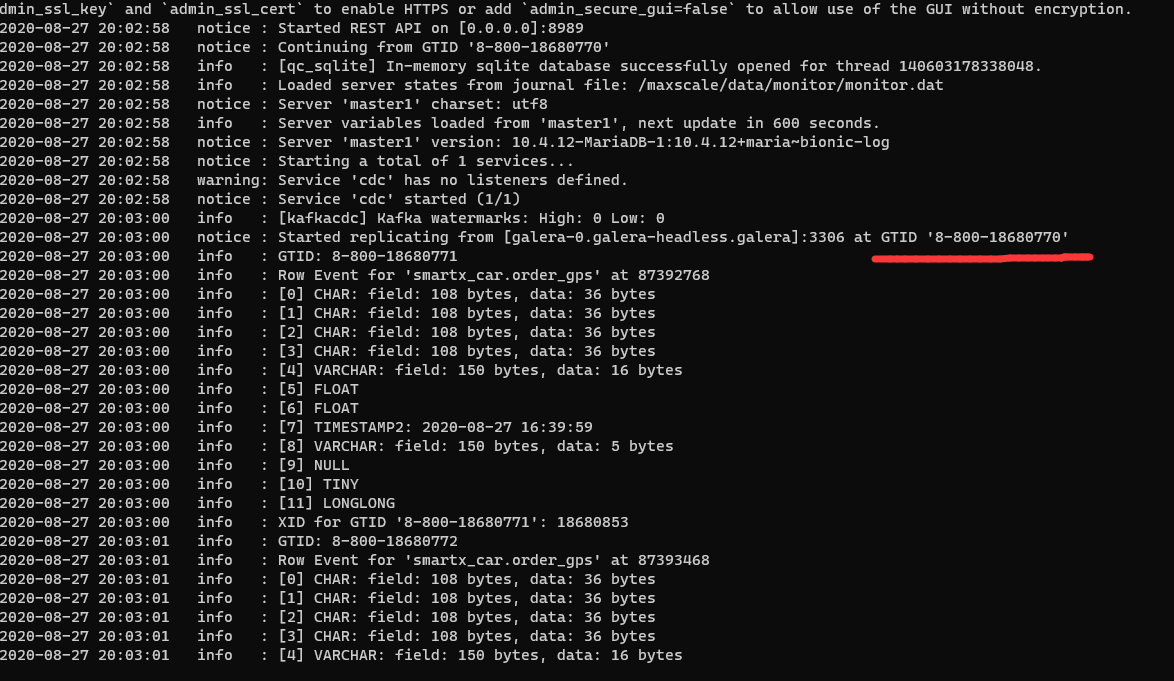 Started replicating from [galera-0.galera-headless.galera]:3306 at GTID '8-800-18680770'