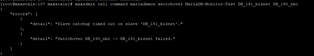 maxadmin call command mariadbmon switchover MariaDB-Monitor-Test DB_191_biznet DB_190_nbc