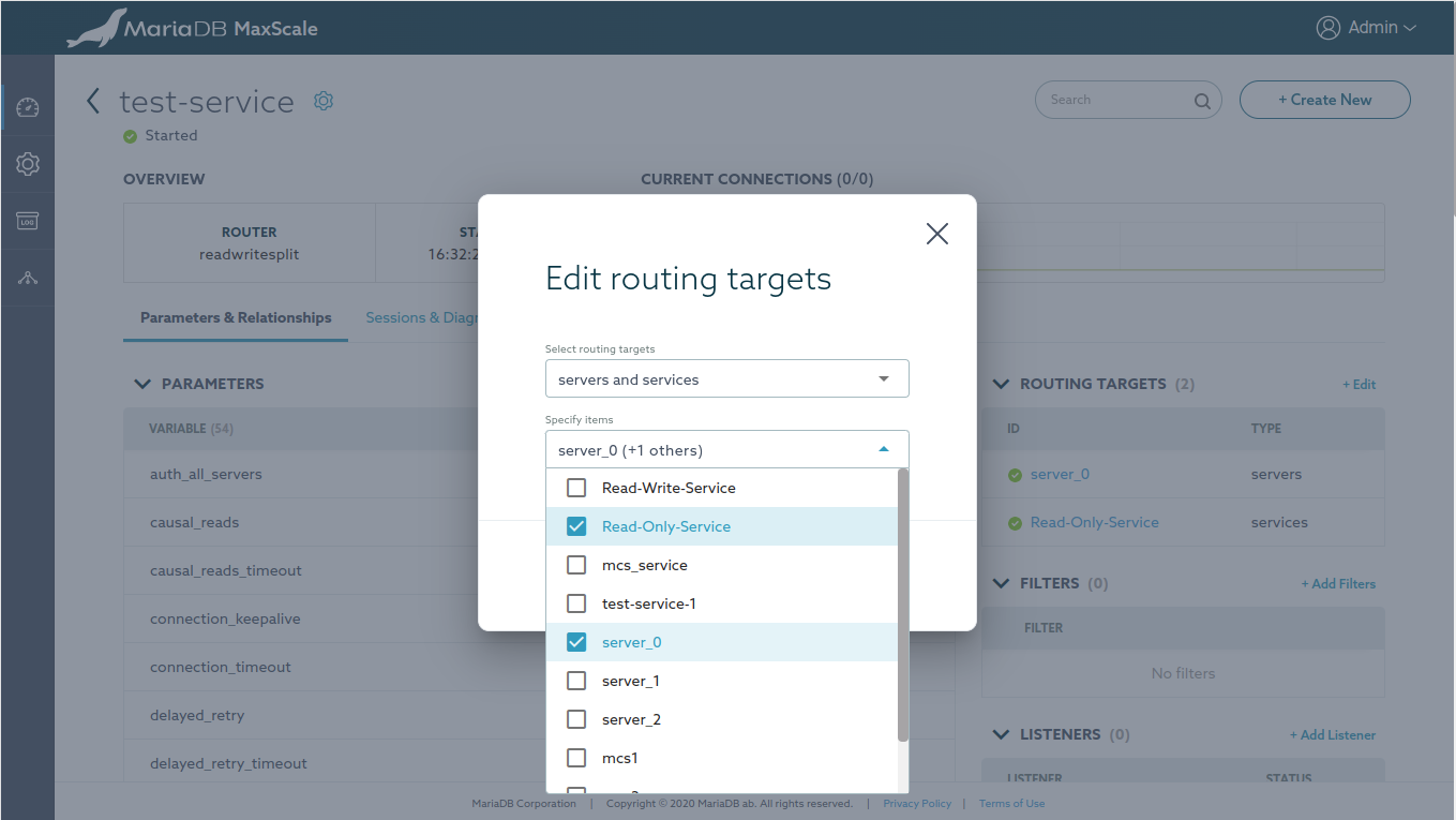 If a service is using another service in its targets parameter, the service is not show as being one of the "servers". The expected behavior is that both servers and services are counted in the totals.