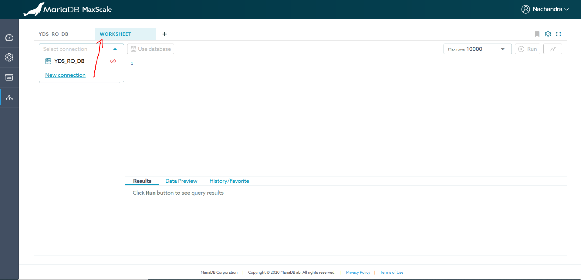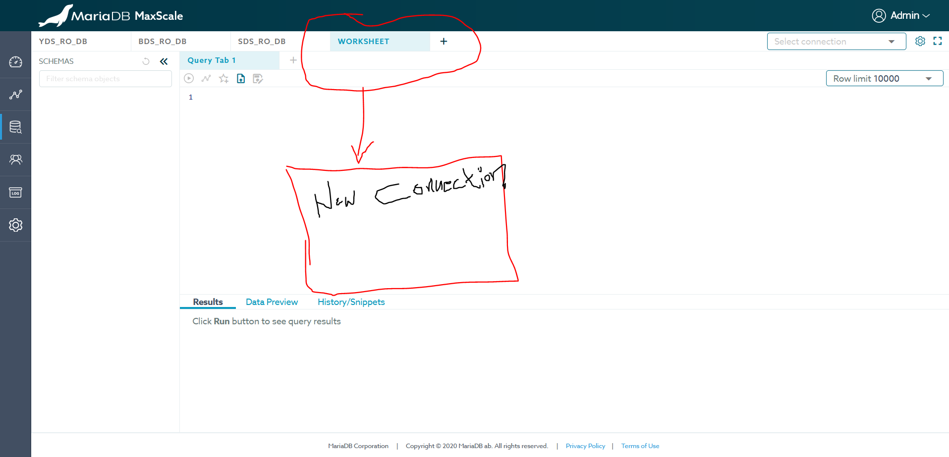 NOTE1: Whenever we create a new WORK SHEET, then it should automatically open one popup and ask for new connection creation, so that it will be very user friendly UI to the user. Otherwise user has to go to Select Connection drop down list and all is looks not user friendly. So whenever we click on the new WORK SHEET, immediately create a new connection popup should be open..