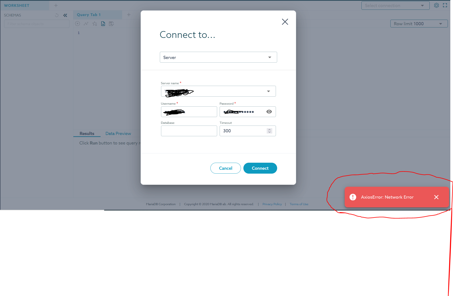 AxiosError: Network Error, while creating a new connection