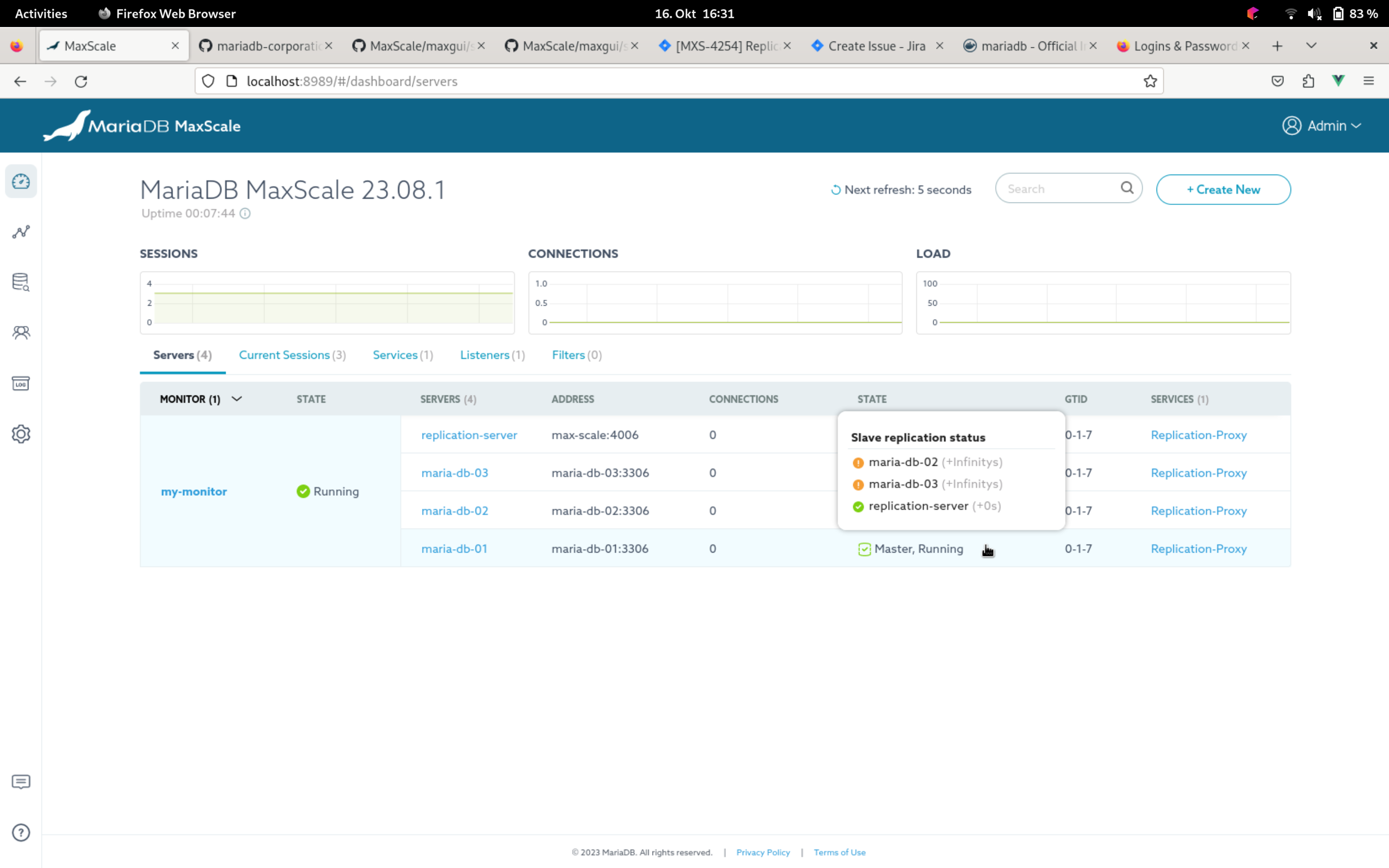 setups where there are multiple primary databases in a single MaxScale monitor break some visual elements. Such a setup is, at least to my knowledge, inevitable when using the binlogrouter component.