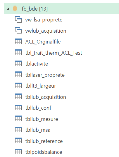 On Excel they are only 13 tables, tblistactivite is missing, it's the only one that have SYSTEM VERSIONING.