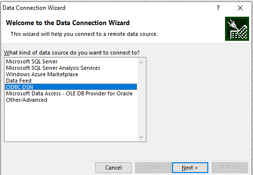 - Open Excel -> Data -> From Other Source - >From Data Connection Wizard -( Note this worked before